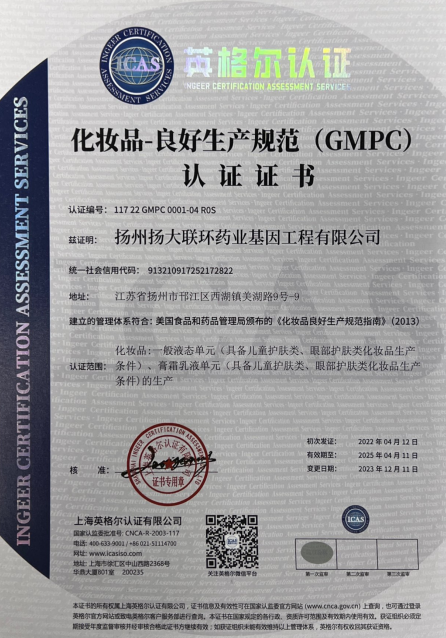化妆品质量管理体系GMPC认证由美国国会颁布,堪称世界化妆品领域的"WTO";ISO22716认证是ISO国际标准化组织发布针对化妆品行业质量管理体系,是对生产厂家的厂房设备、人员、工厂管理及控制等软硬件两方面所做出的具体要求。